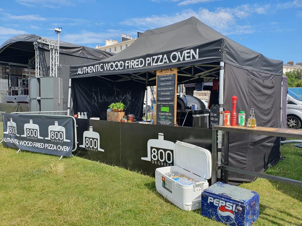 Owners Alex and Glen are both Brightonians, and our director Kate has known Alex for 35 years and worked with her in hospitality in the past. 800 Degrees have two amazing wood fired mobile pizza oven trailers they set up at events, selling authentic rustic pizzas with various toppings. They also have a gazebo and recycled wooden frontage and they only use compostable serving plates or wooden boards to serve, making recycling and eco-friendly catering paramount. They cater to a range of dietary requirements, including vegan, vegetarian, dairy free, lactose intolerant, nut free and gluten free and have large events and festival experience with their team of family and friends, making them the perfect for a range of events with hungry guests.